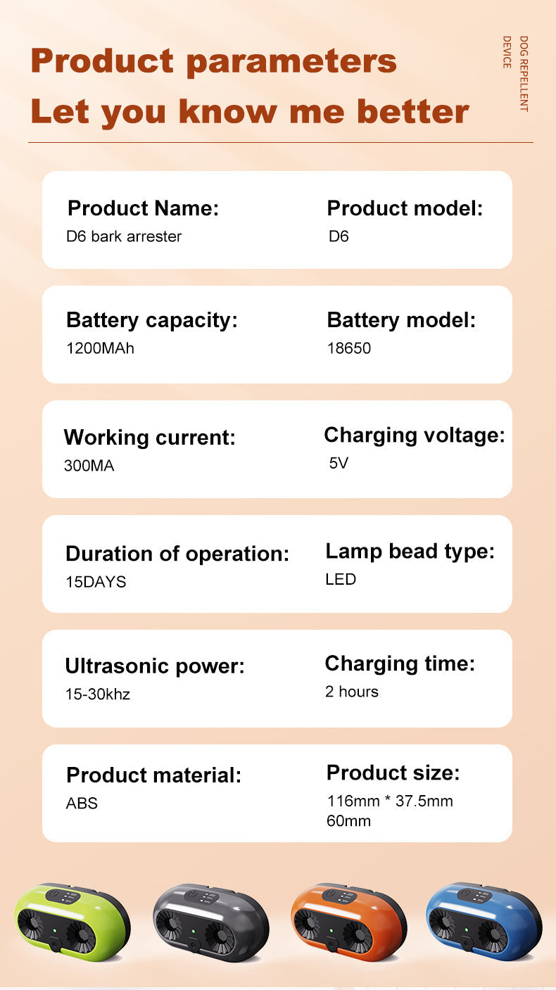 3. When the dog roars abnormally in the power on state, the product automatically emits ultrasonic frequency. At this time, the green LEI light stays on for 5 seconds to stop the dog from roaring; Automatically enter standby mode after 5 seconds; The red light flashes every 5 seconds in standby mode;