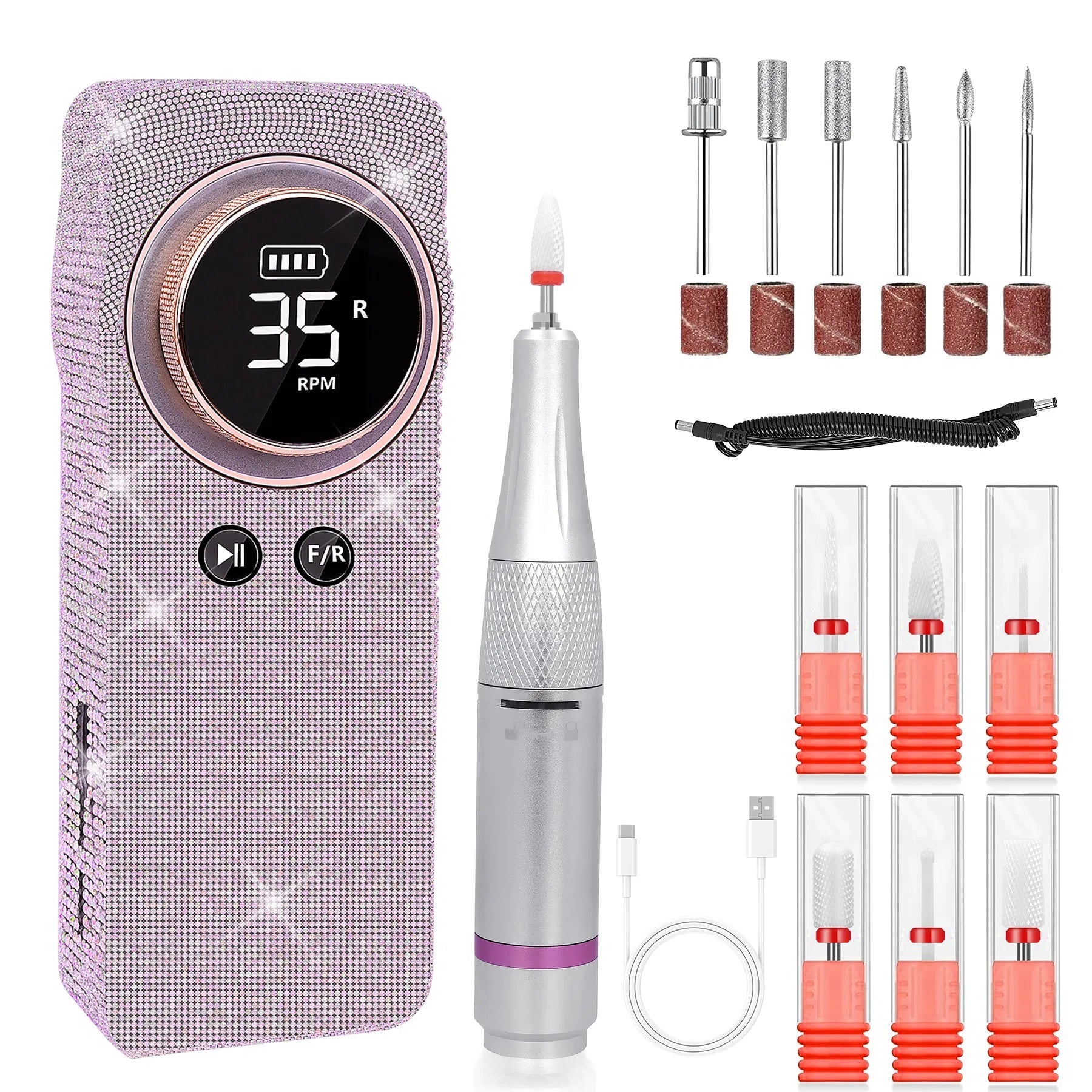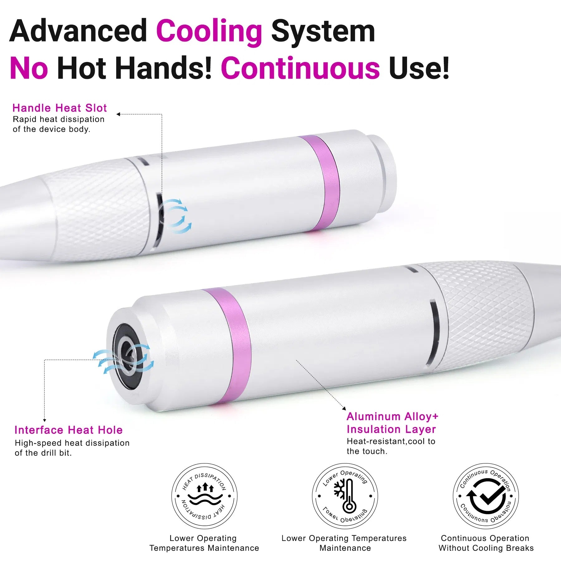 [Multifunctional]: Experienced The Power of our Professional Rechargeable 35000 RPM Nail Drill, a versatile manicure and pedicure tool for both home and salon use. It's designed for carving, engraving, routing, grinding, sharpening, sanding, cutting, and polishing, making it great for acrylic and natural nails, as well as pet nail sanding.