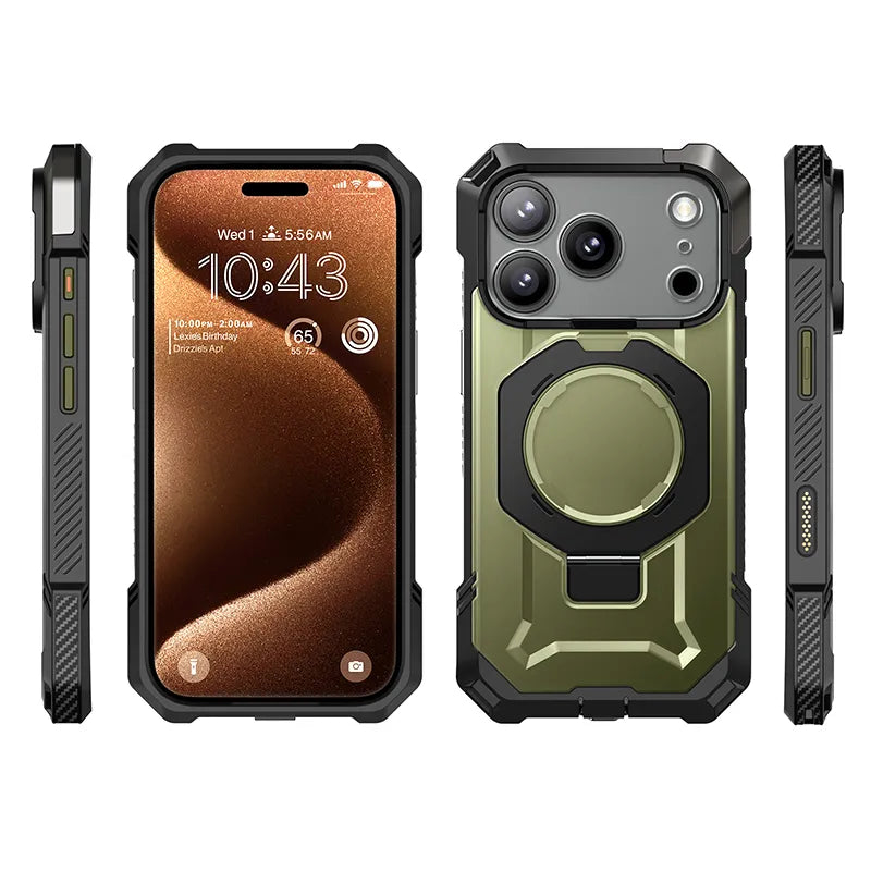 • Kickstand & MagSafe Features: Built-in aluminum alloy kickstand provides multiple viewing angles. N52 strong magnet with up to 1800g magnetic force ensures seamless compatibility with MagSafe accessories.